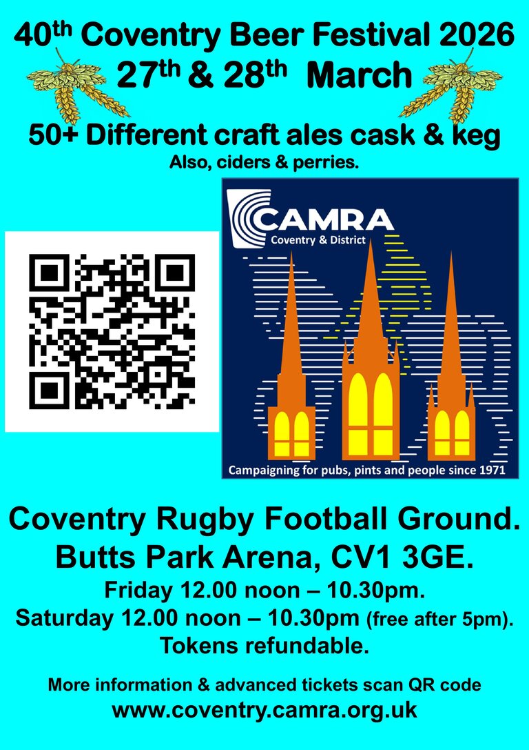 Can any local CAMRA members help. We have a number of posts vacant on the branch committee. Young Members officer, Public affairs liaison officer & Cider & Perry officer. More details on Members' Area web page use this link. If interested drop an email to ku.gro.armac.yrtnevoc@tcatnoc or come along to the next branch meeting.