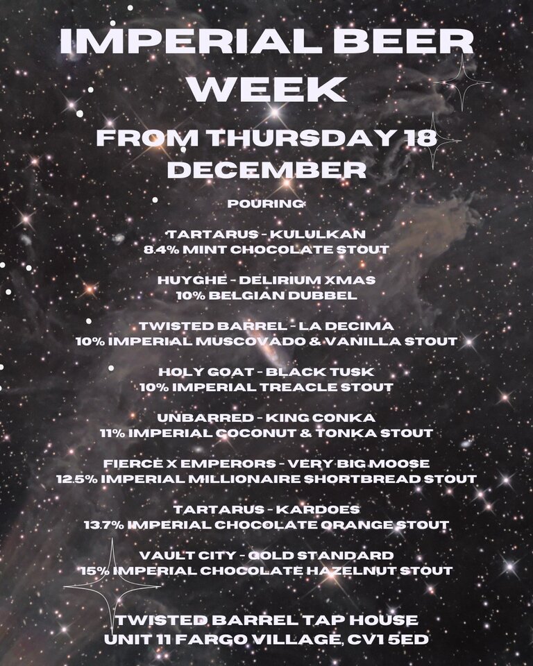 IMPERIAL BEER WEEK FROM THURSDAY 18 DECEMBER